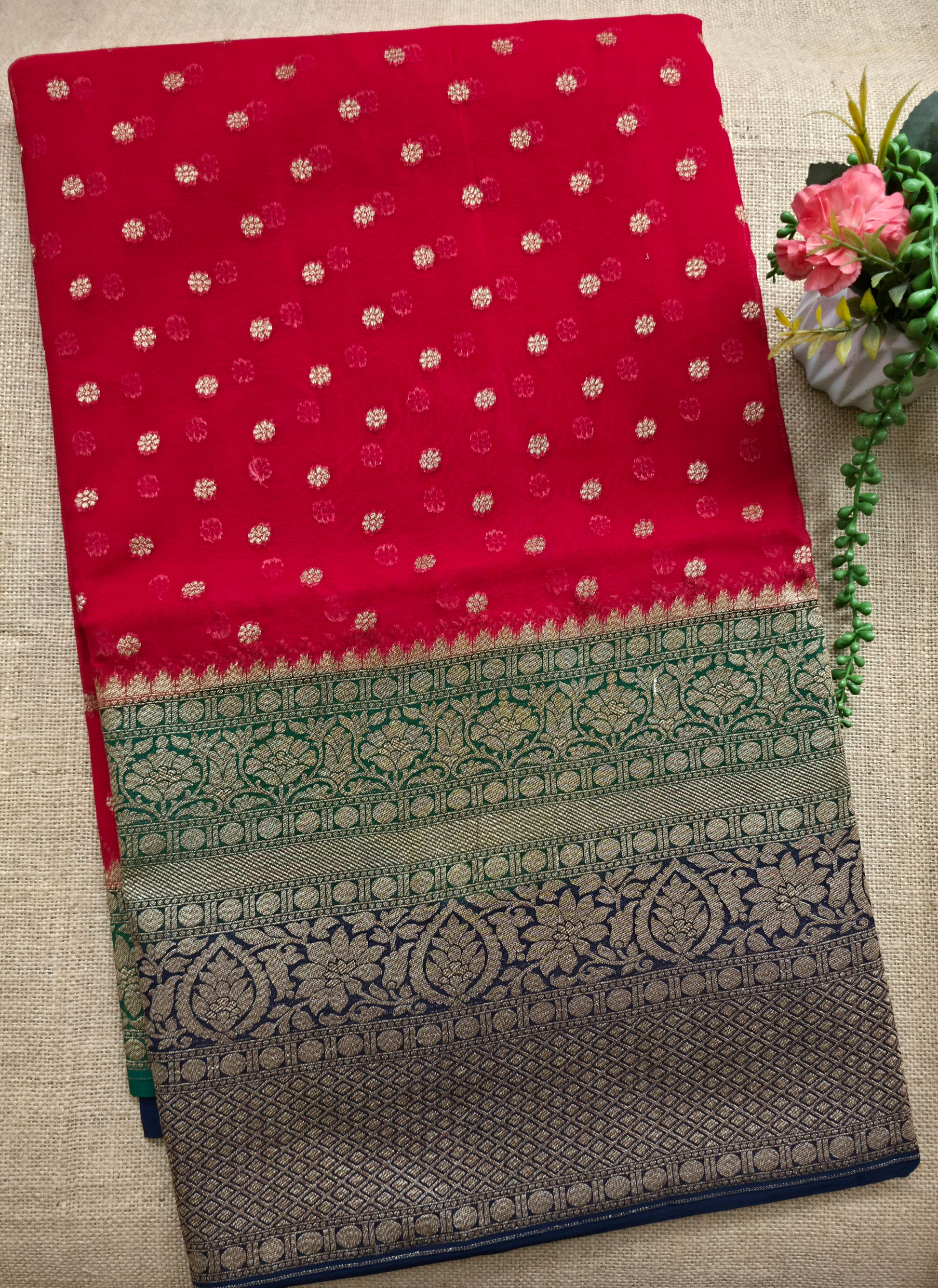 UP000036 - Antique Red & Gold Banarasi Georgette Handloom Saree