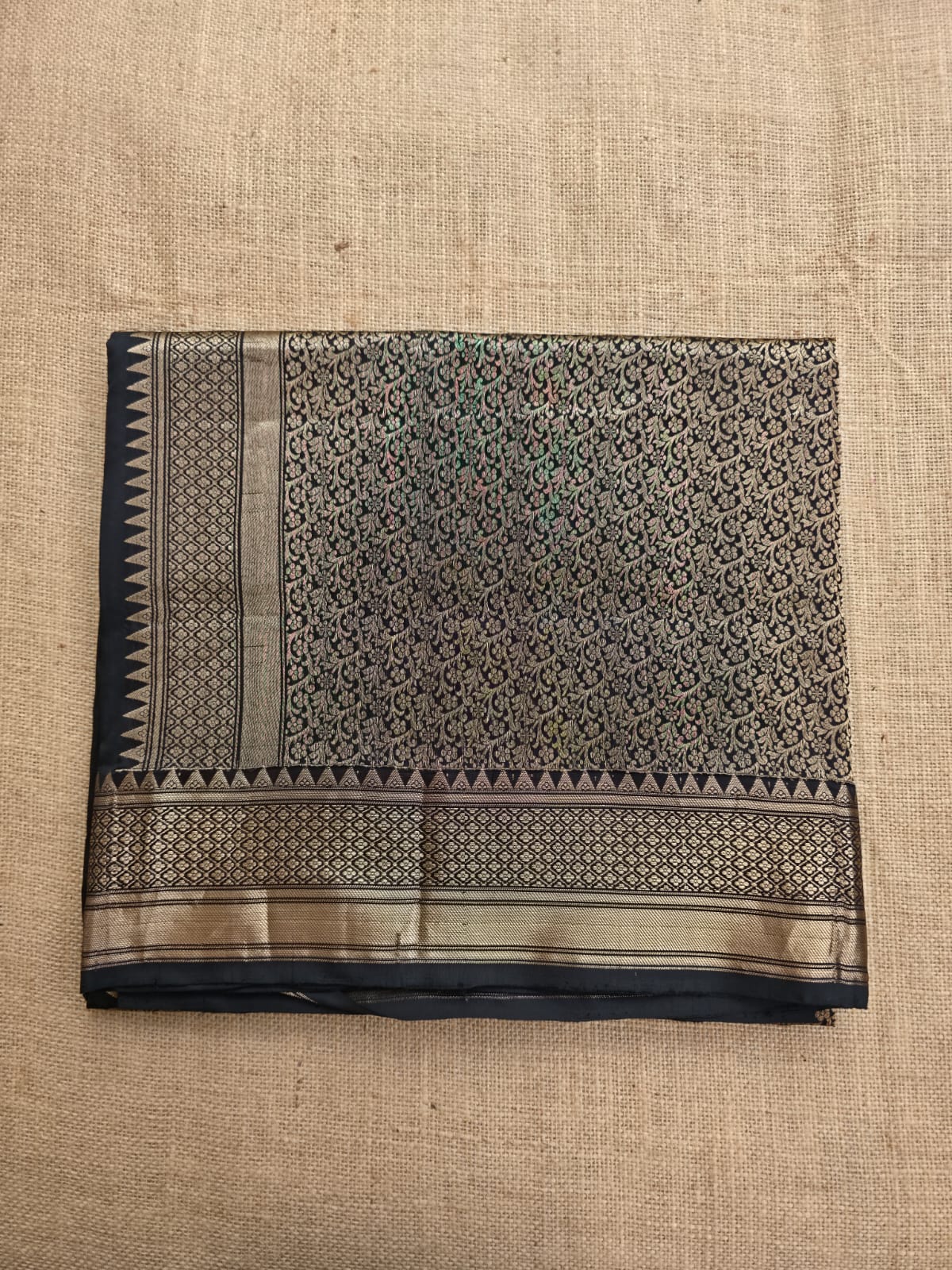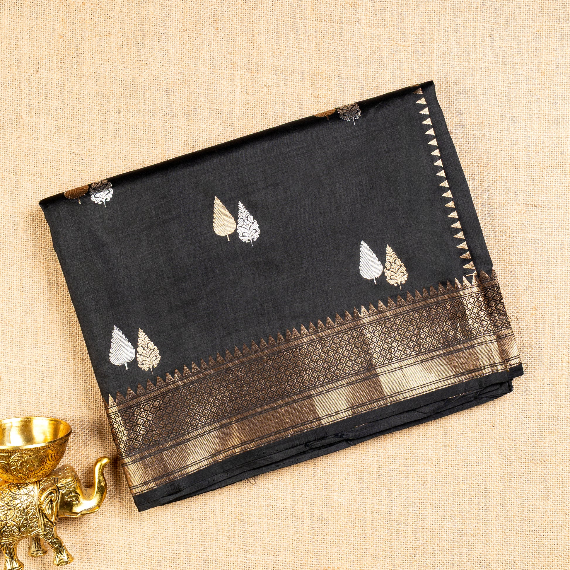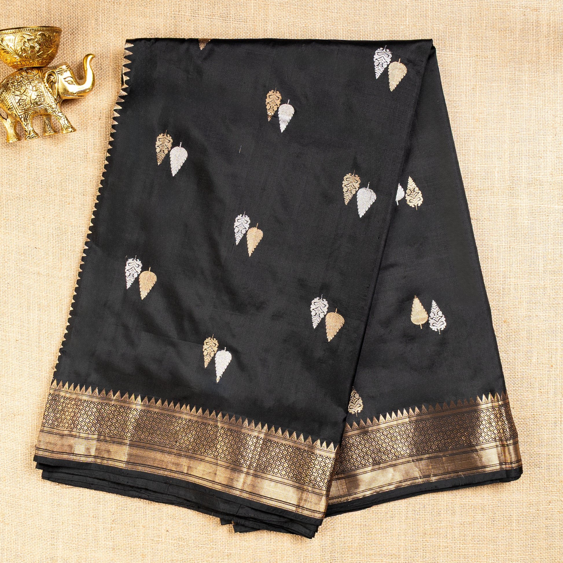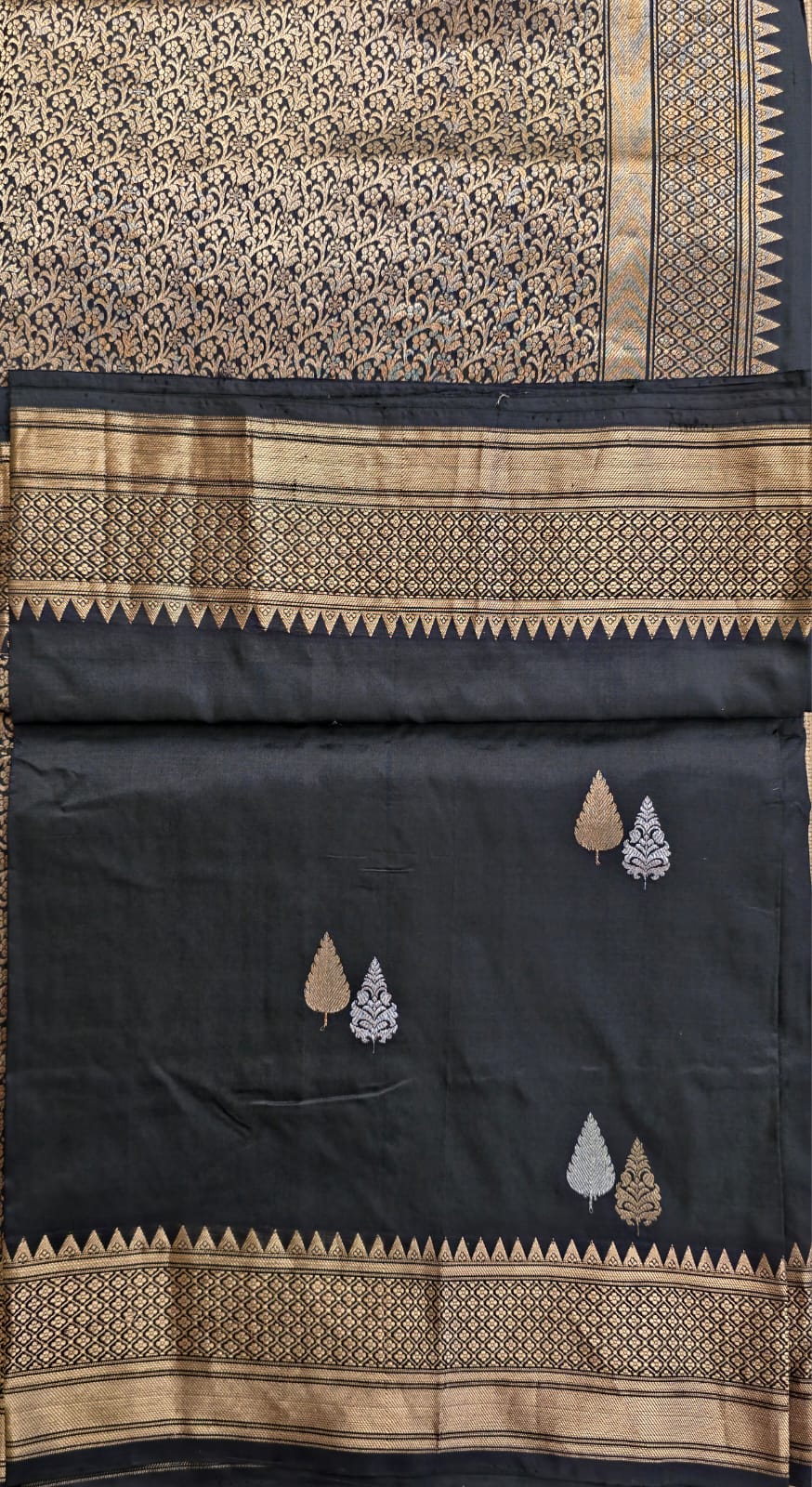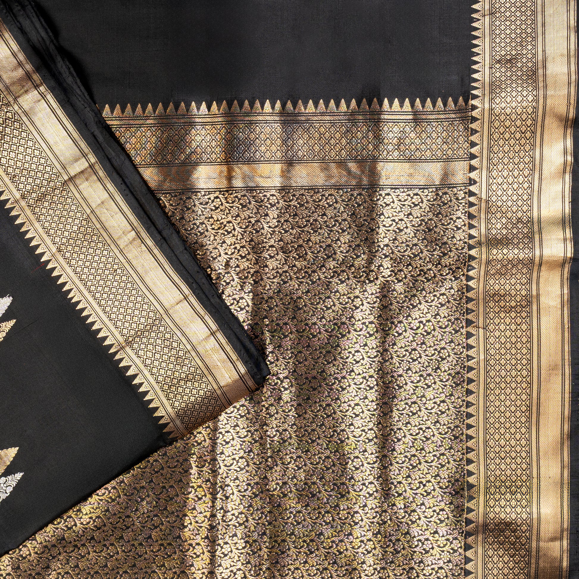 UP000008 - Black & Gold Banarasi Pure Silk - Katan Silk