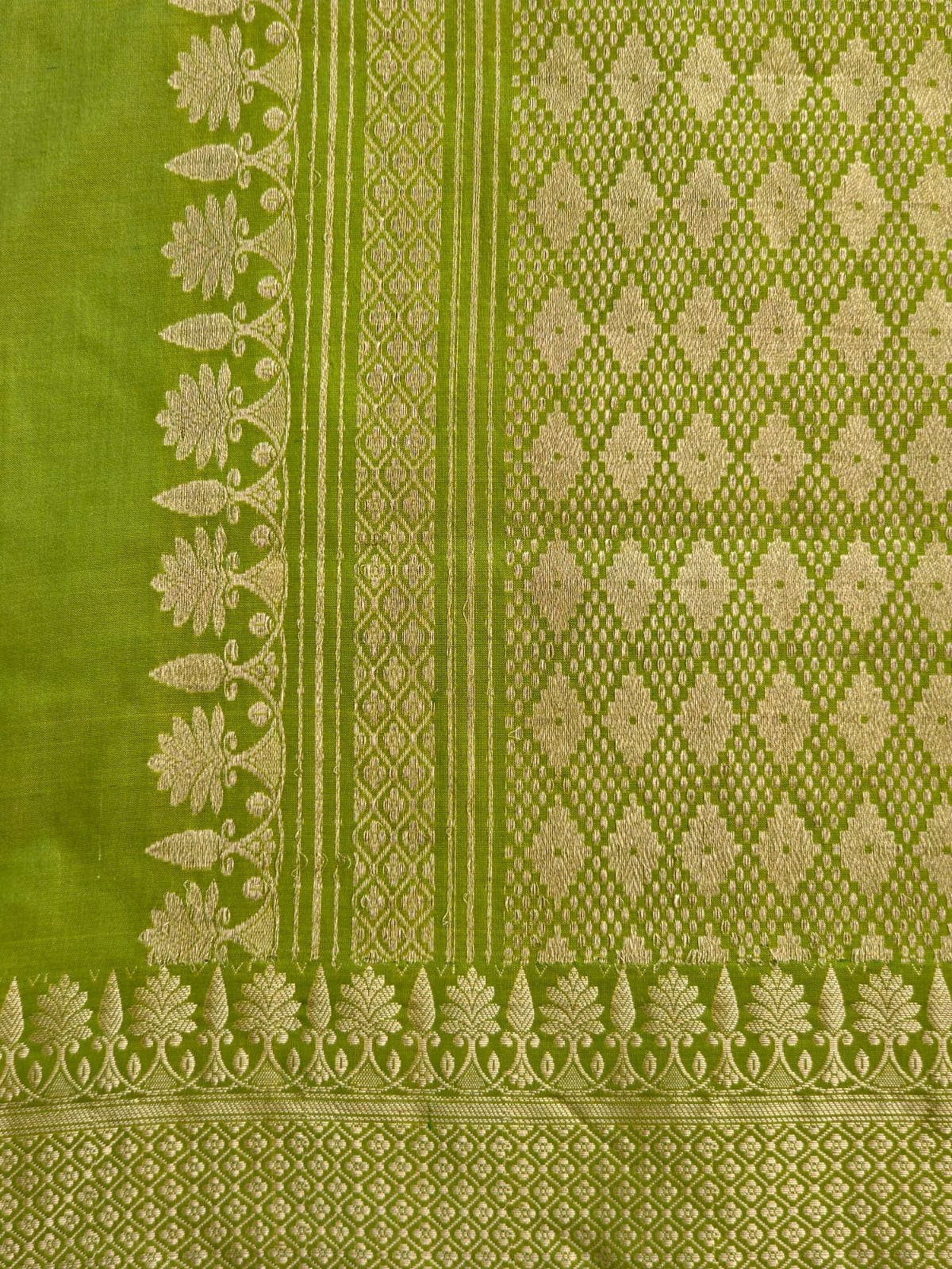 UP000015 - Mehendi Green Banarasi Pure Silk - Katan Silk