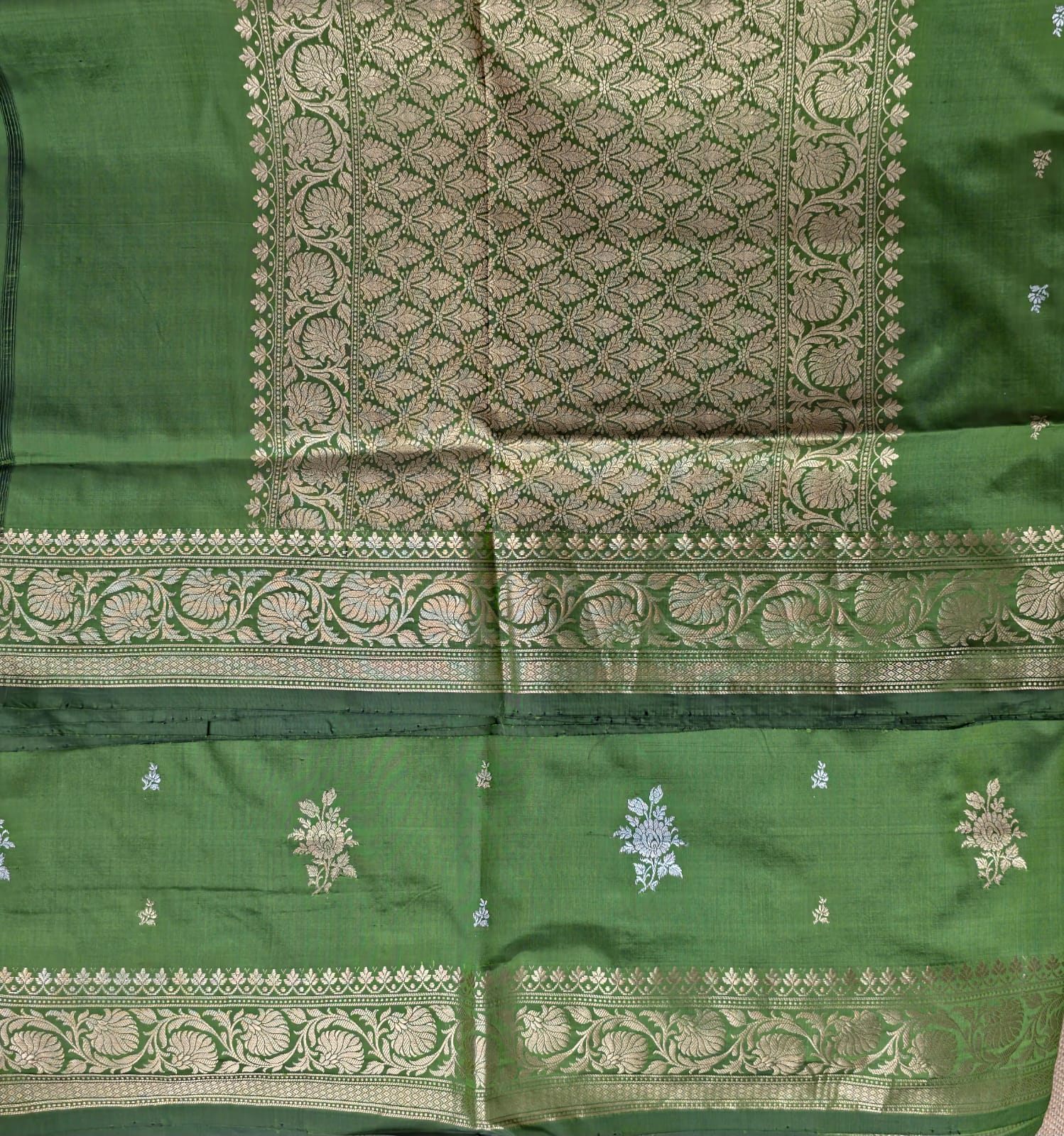 UP000021 - Banarasi Pure Katan Silk (Mehendi Green)
