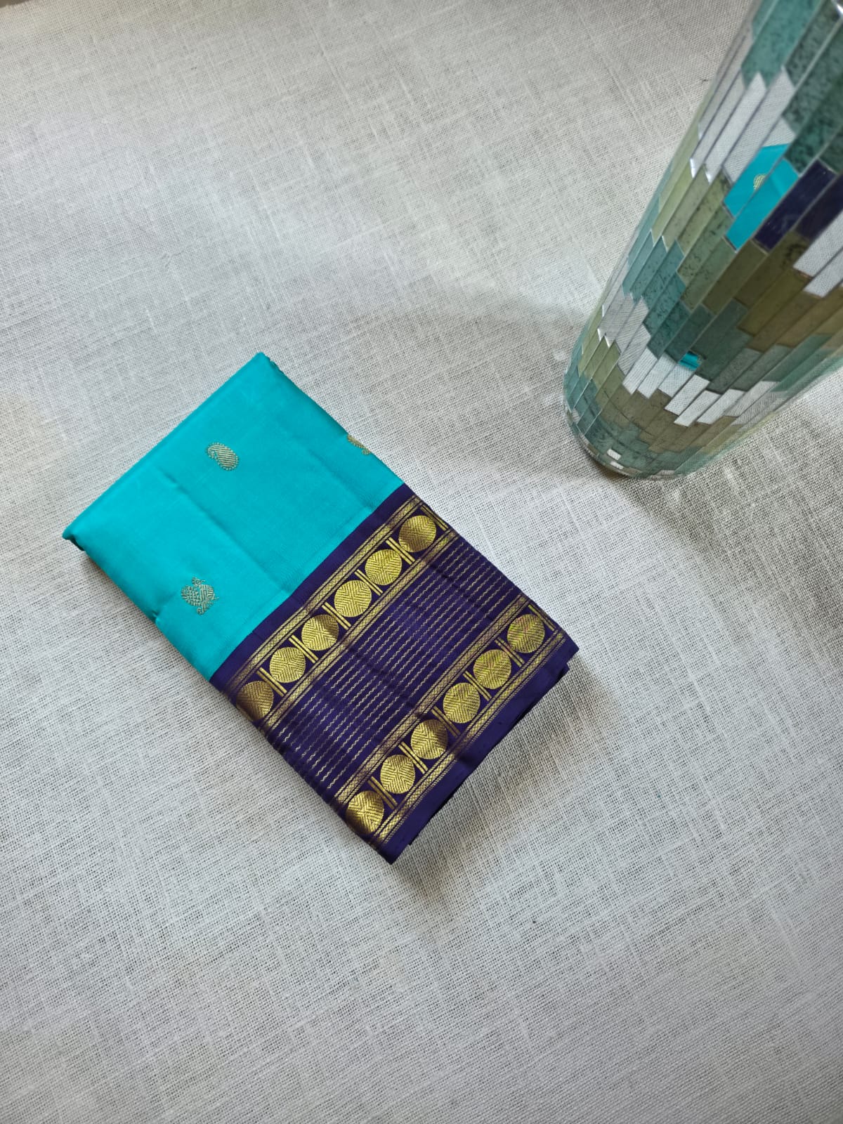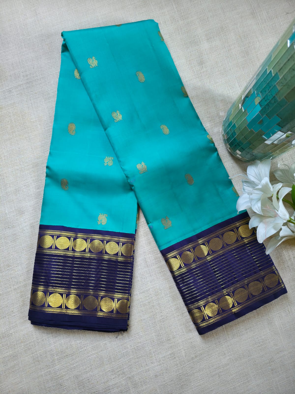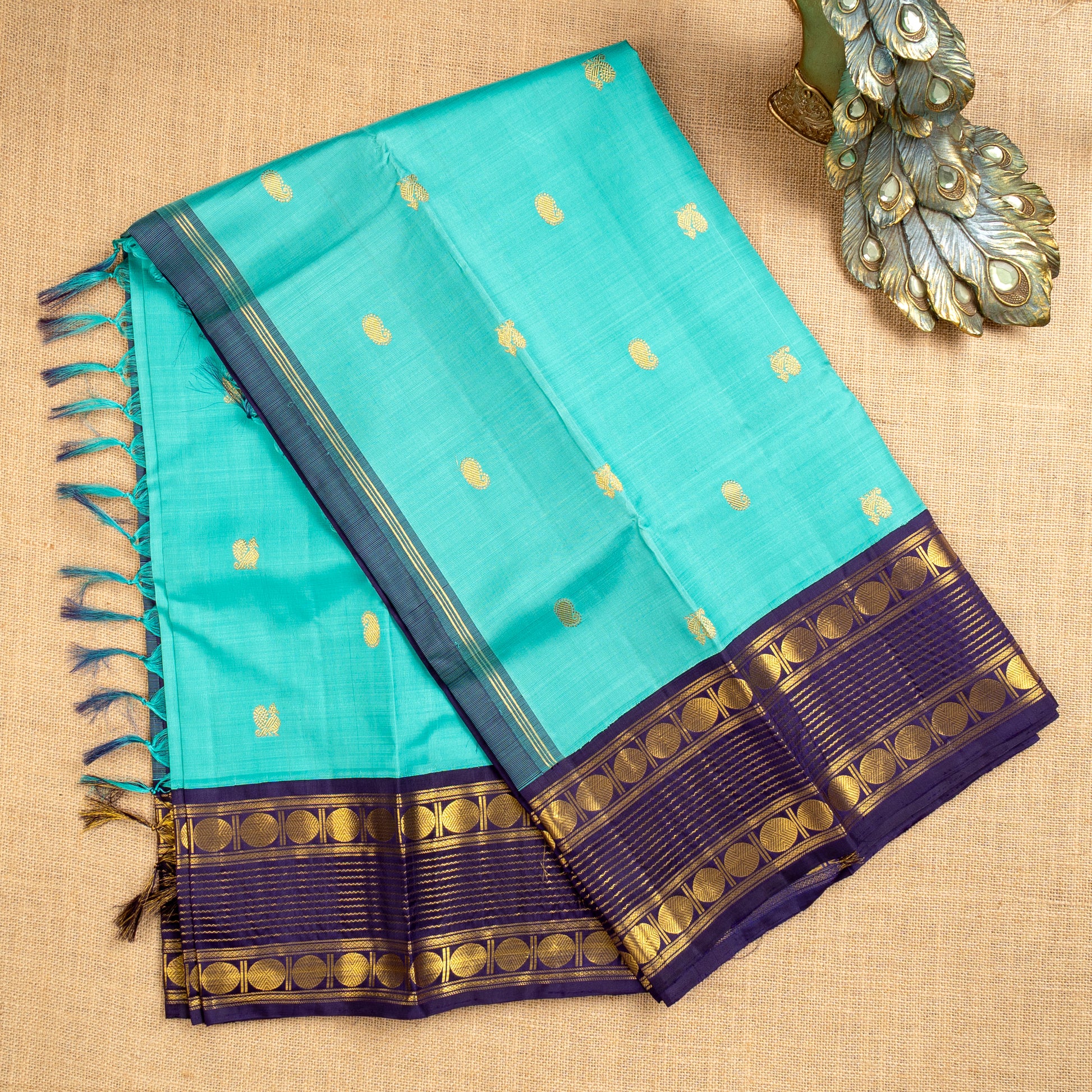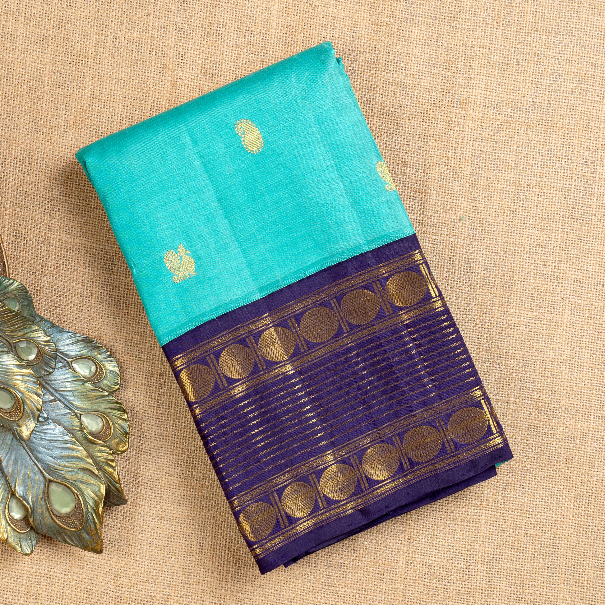 TN000035 Aqua Blue Korvai Kanjivaram Pure Silk