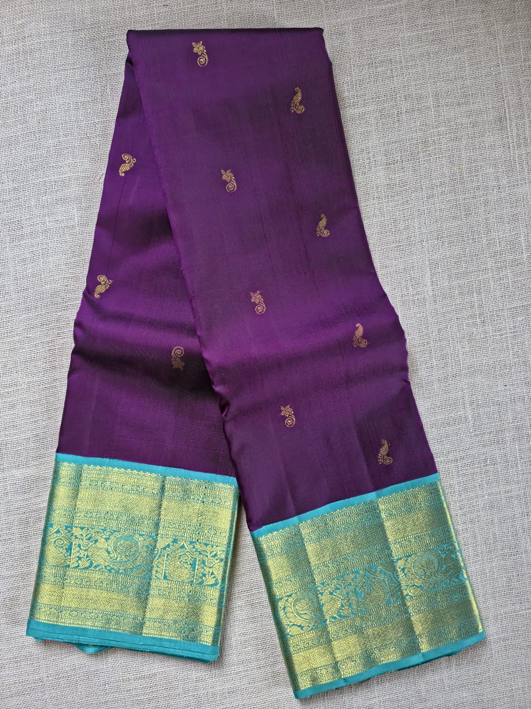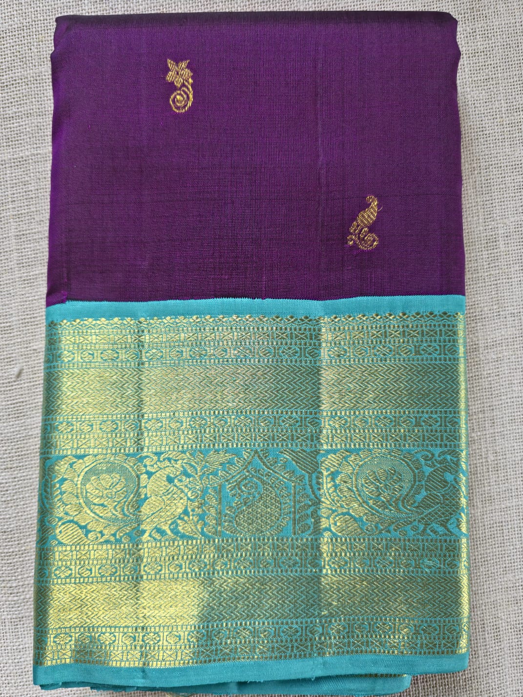 TN000036 - Purple/Aqua Blue Zari Border Korvai Kanjivaram Pure Silk