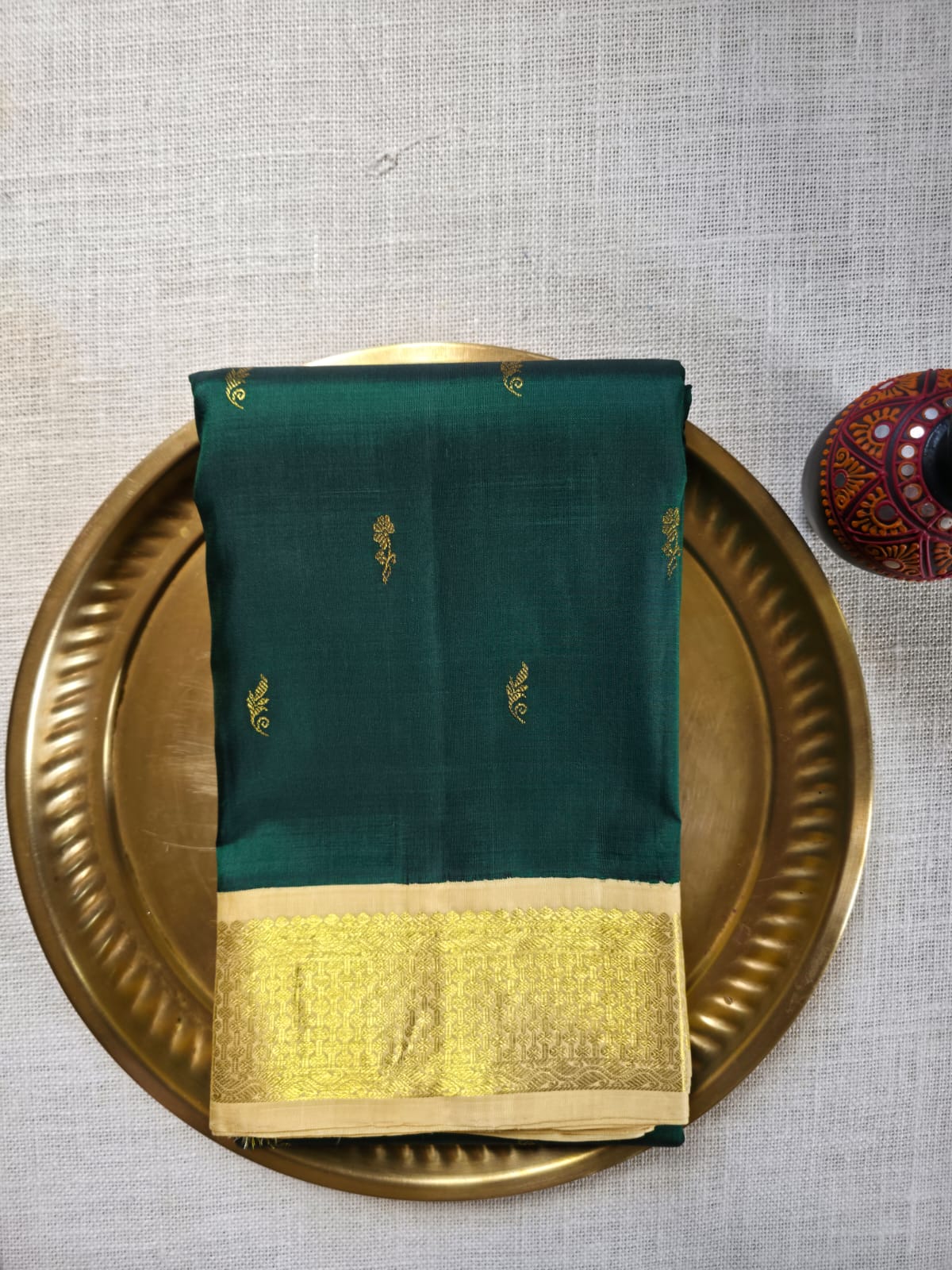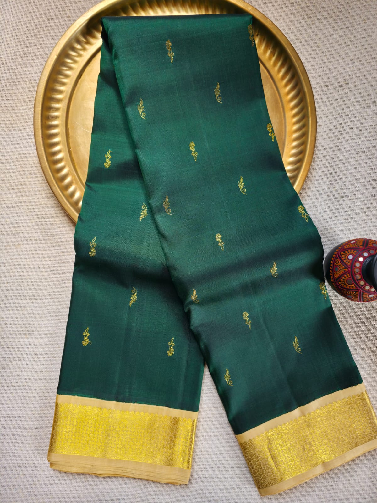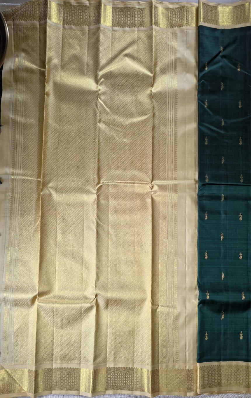 Color Combination: Bottle green body with ivory pallu