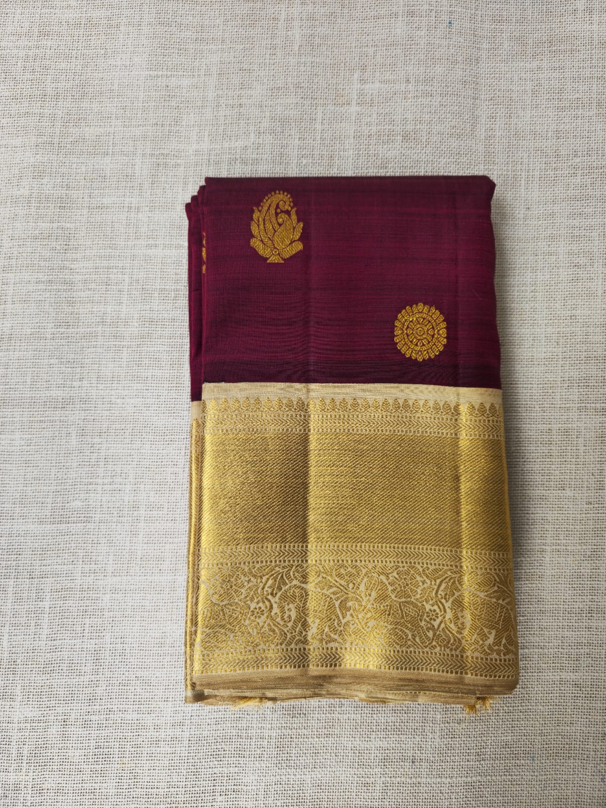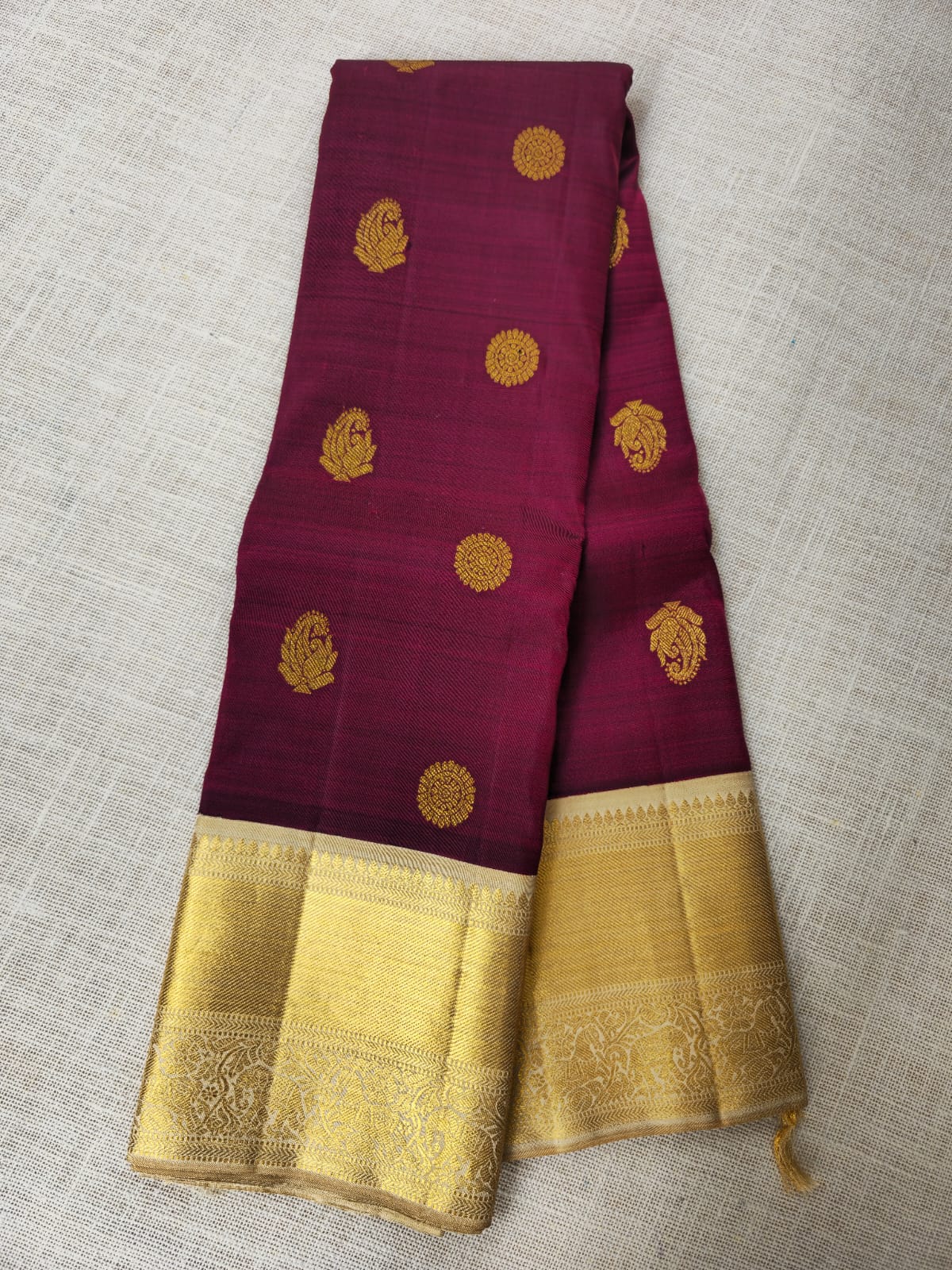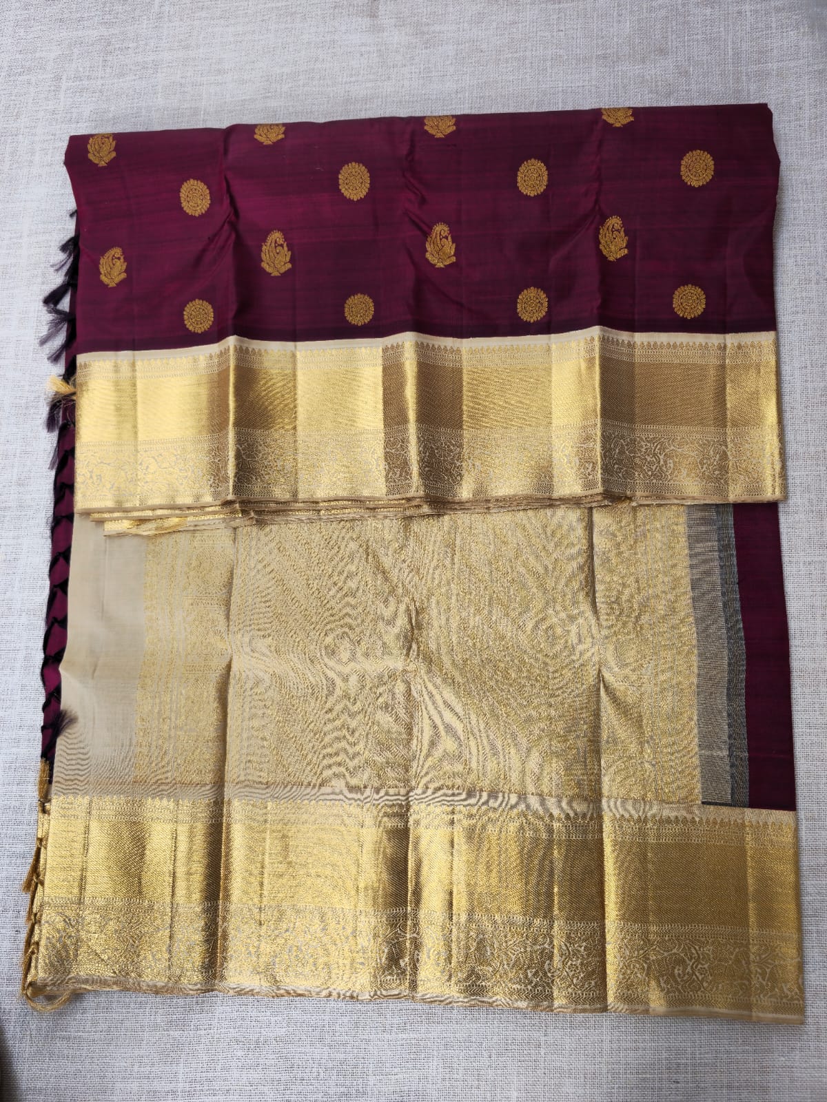 TN000038 - Maroon & Gold Korvai Kanjivaram Pure Silk