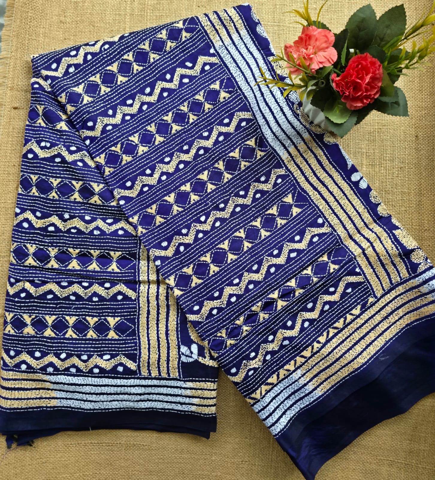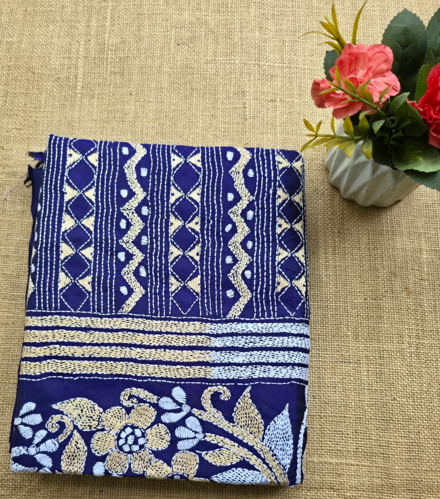 A stunning Kantha Stitch in Silk saree—a perfect blend of tradition and luxury