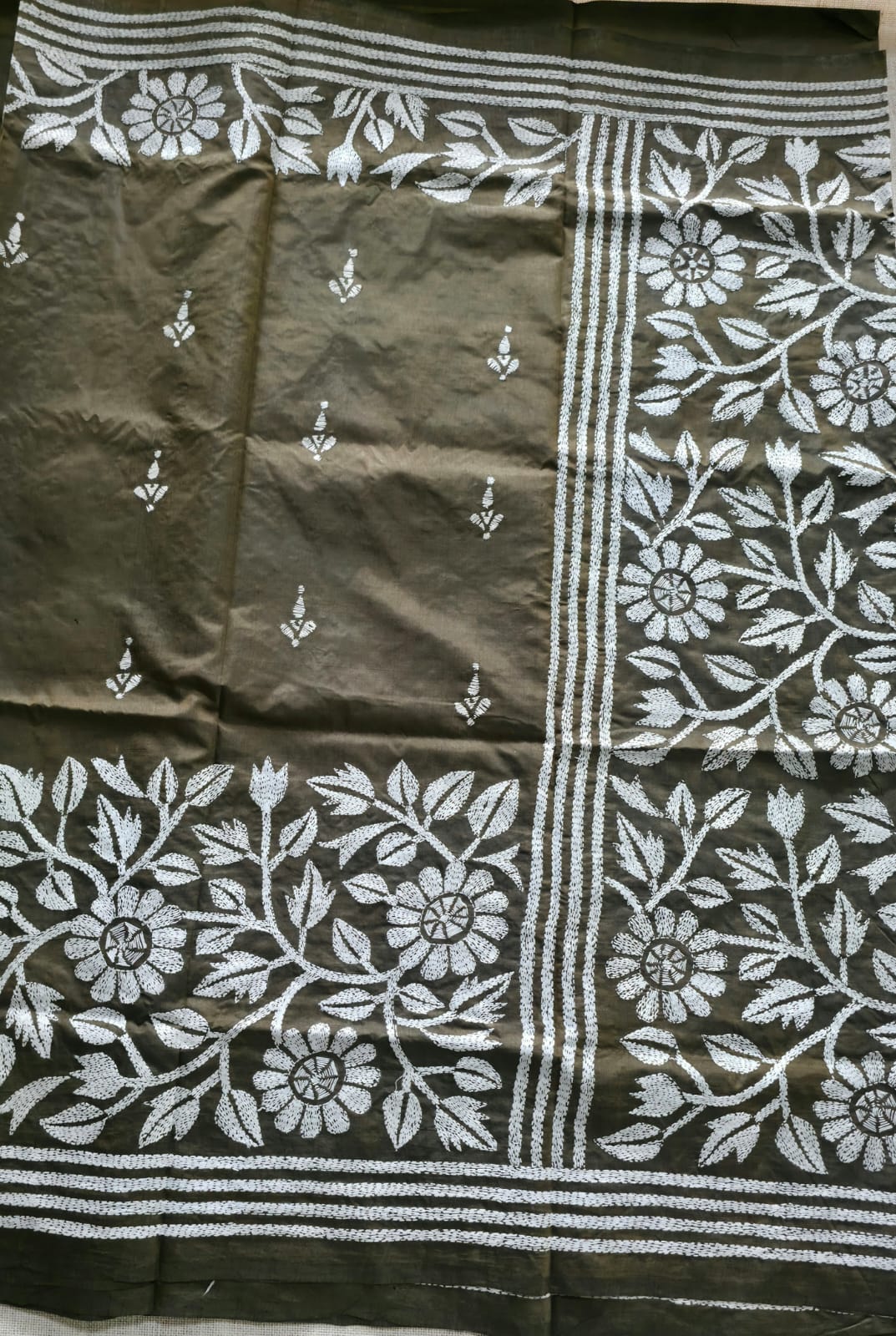 WB000002 - Pure Silk (Kantha Stitch) Mehandi Green