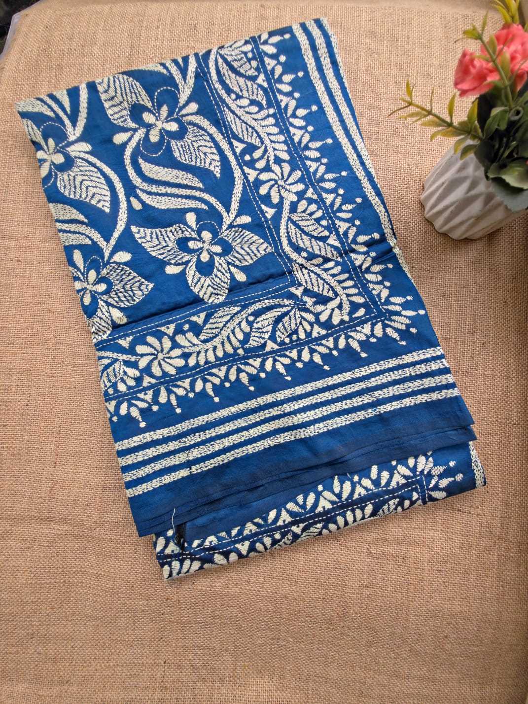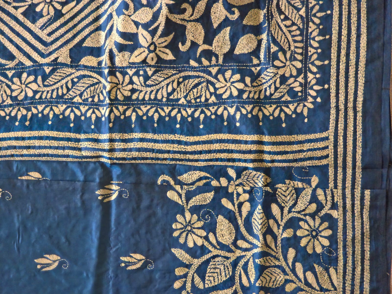 Pure Bangalore Silk with hand-embroidered Kantha stitch all over - Kantha Stitch sarees.