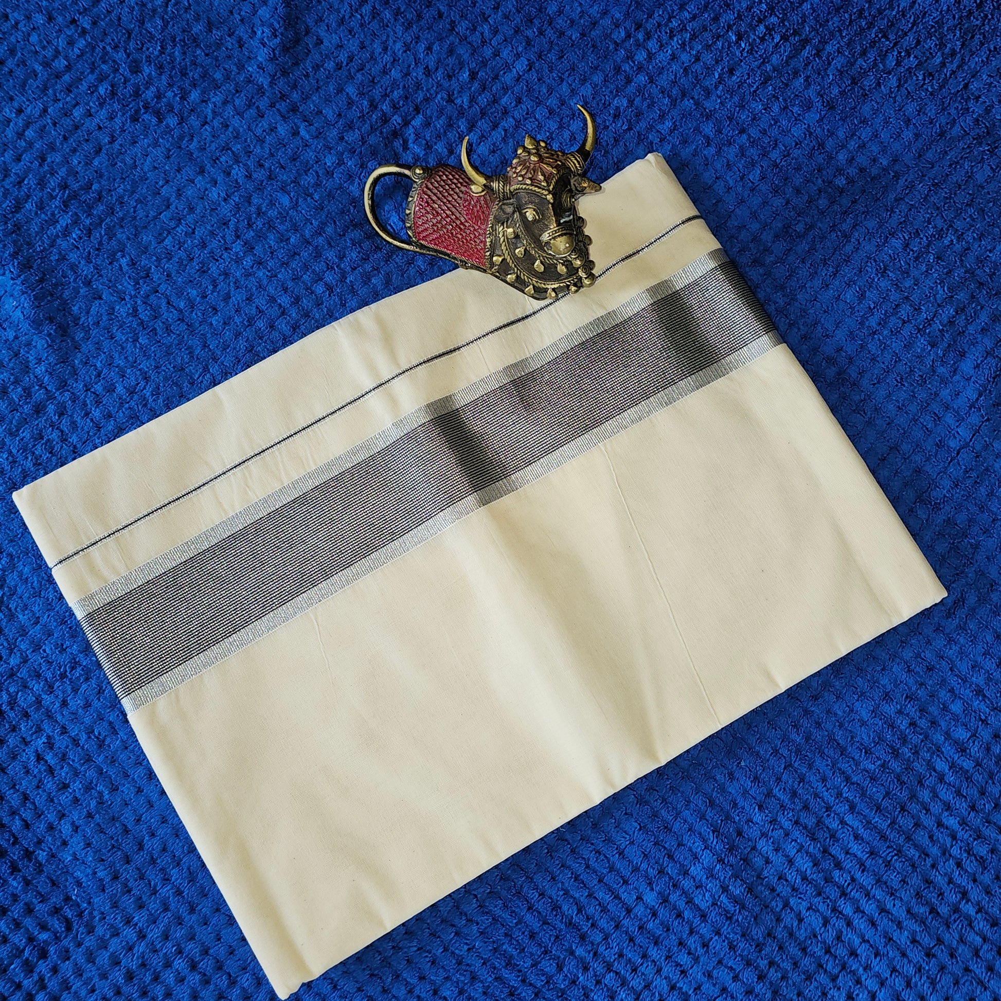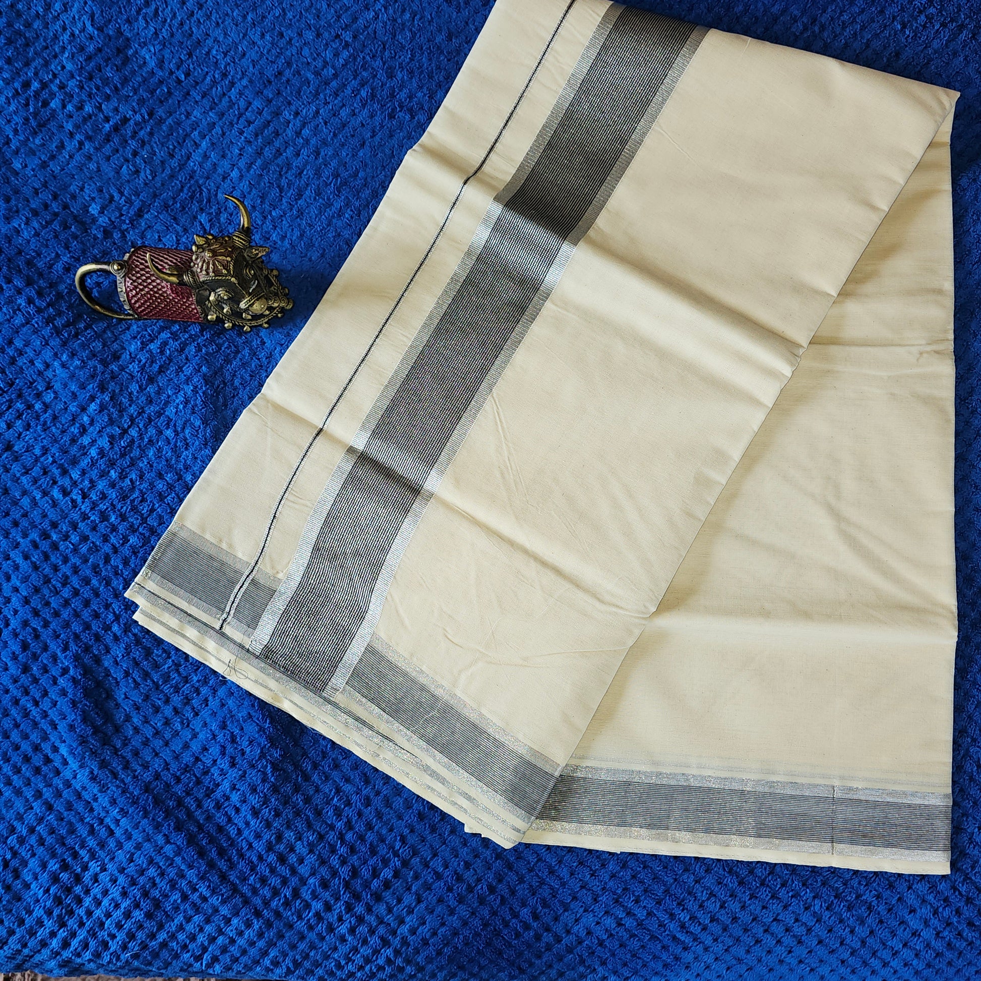 KL000005 - Kerala Saree-Silver Fancy - Black Border