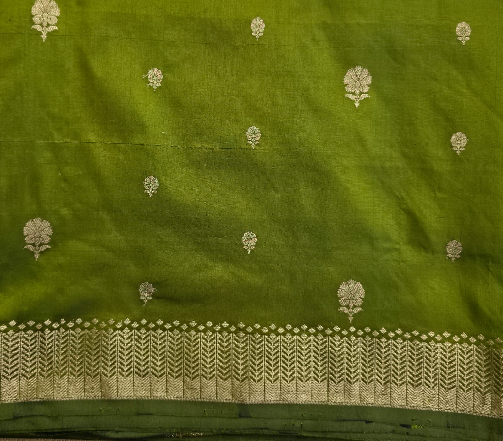 UP000012 - Olive Green Banarasi Pure Silk - Katan Silk