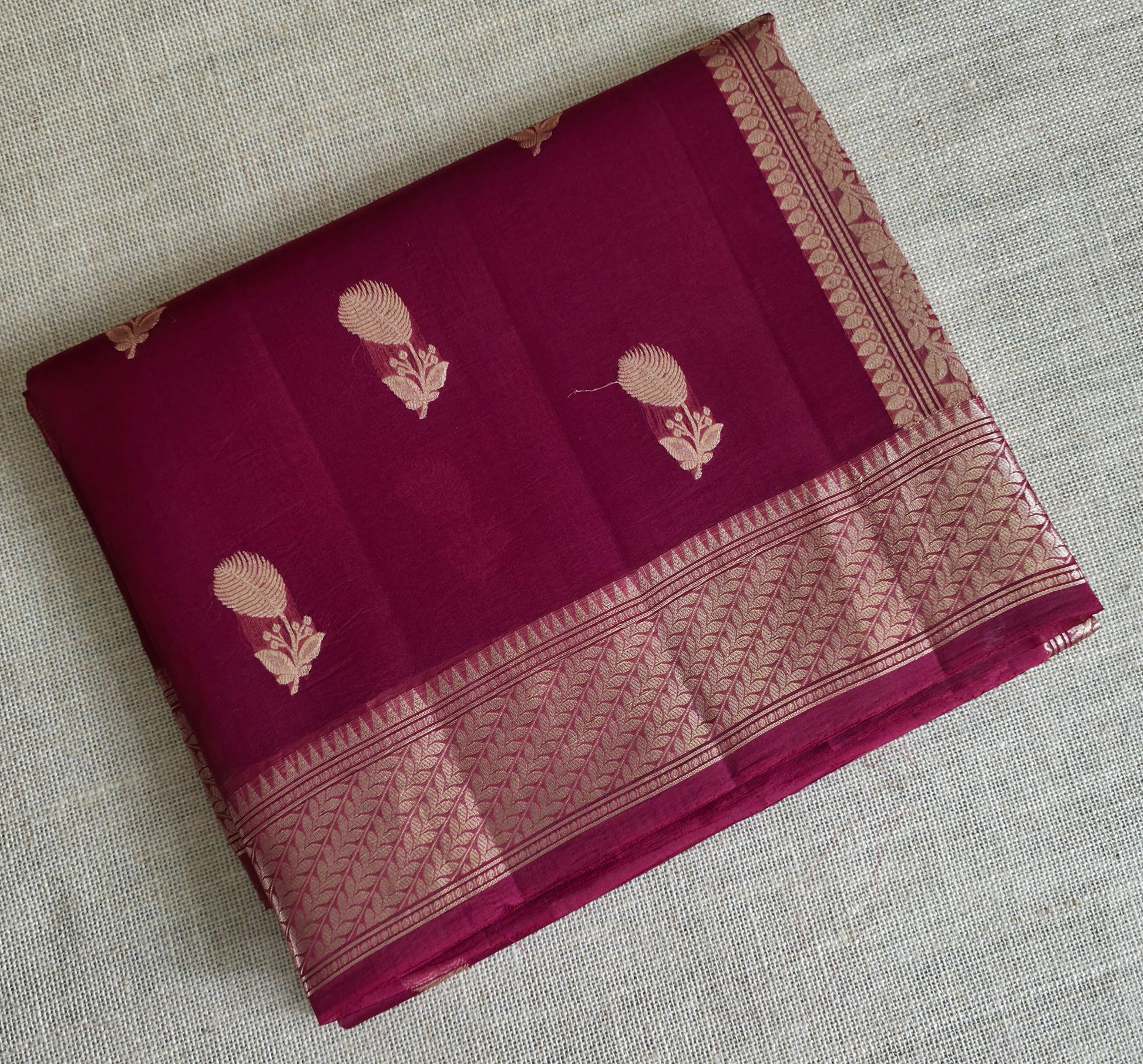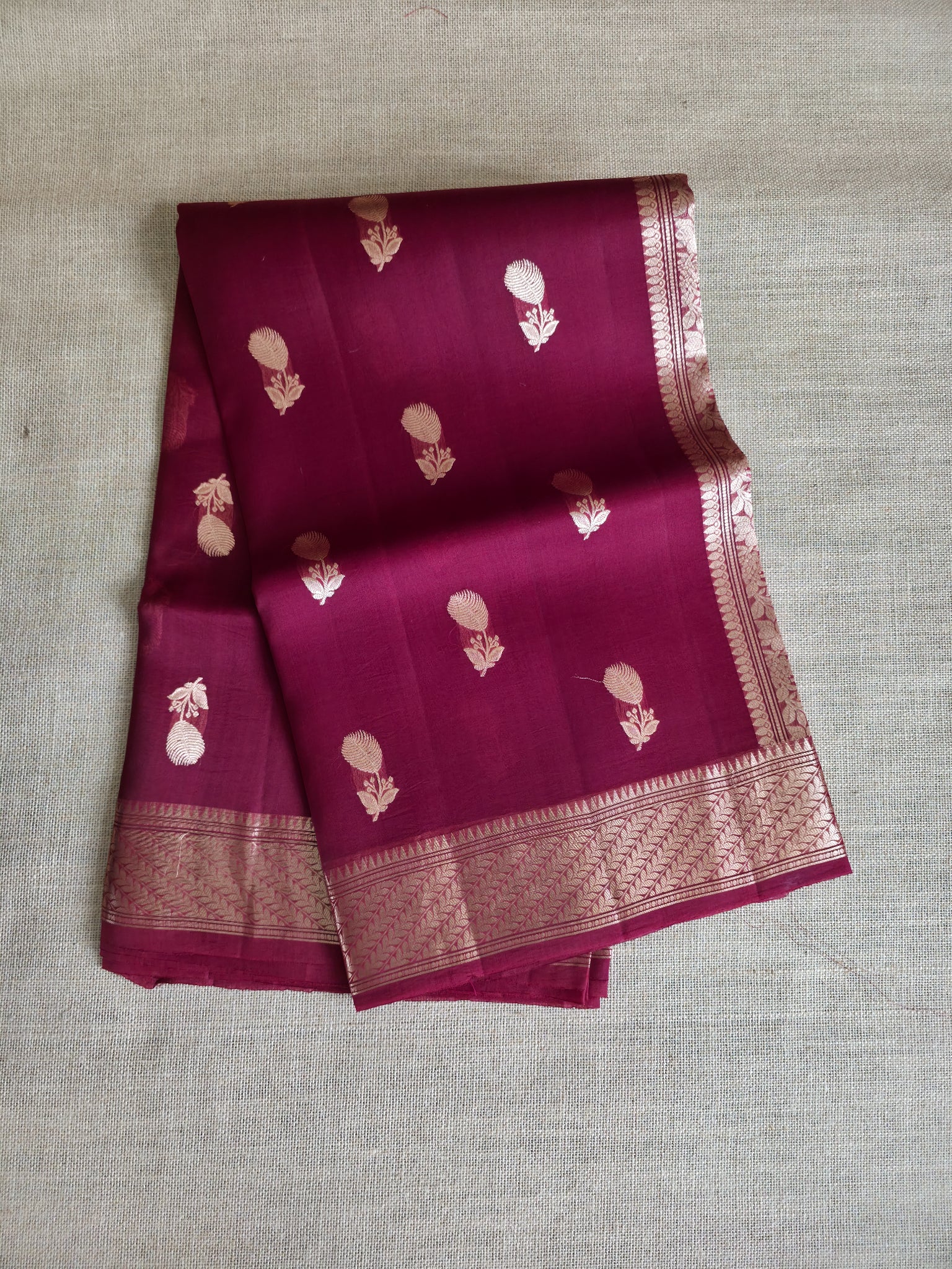 Rich Maroon Banarasi Organza Silk Saree with Delicate Motifs
