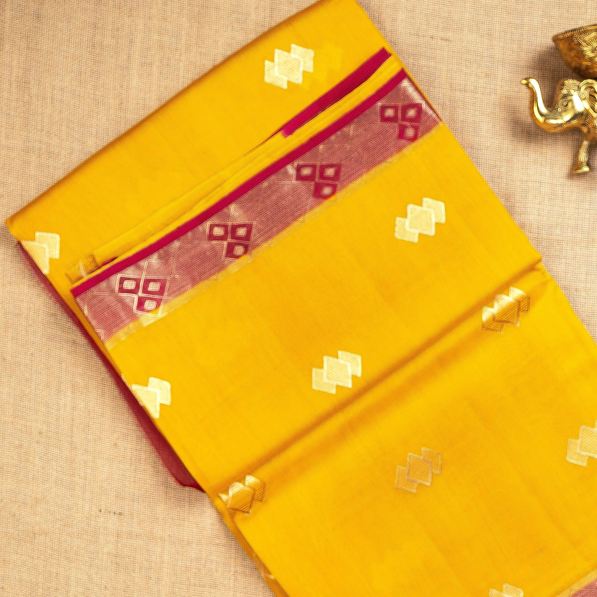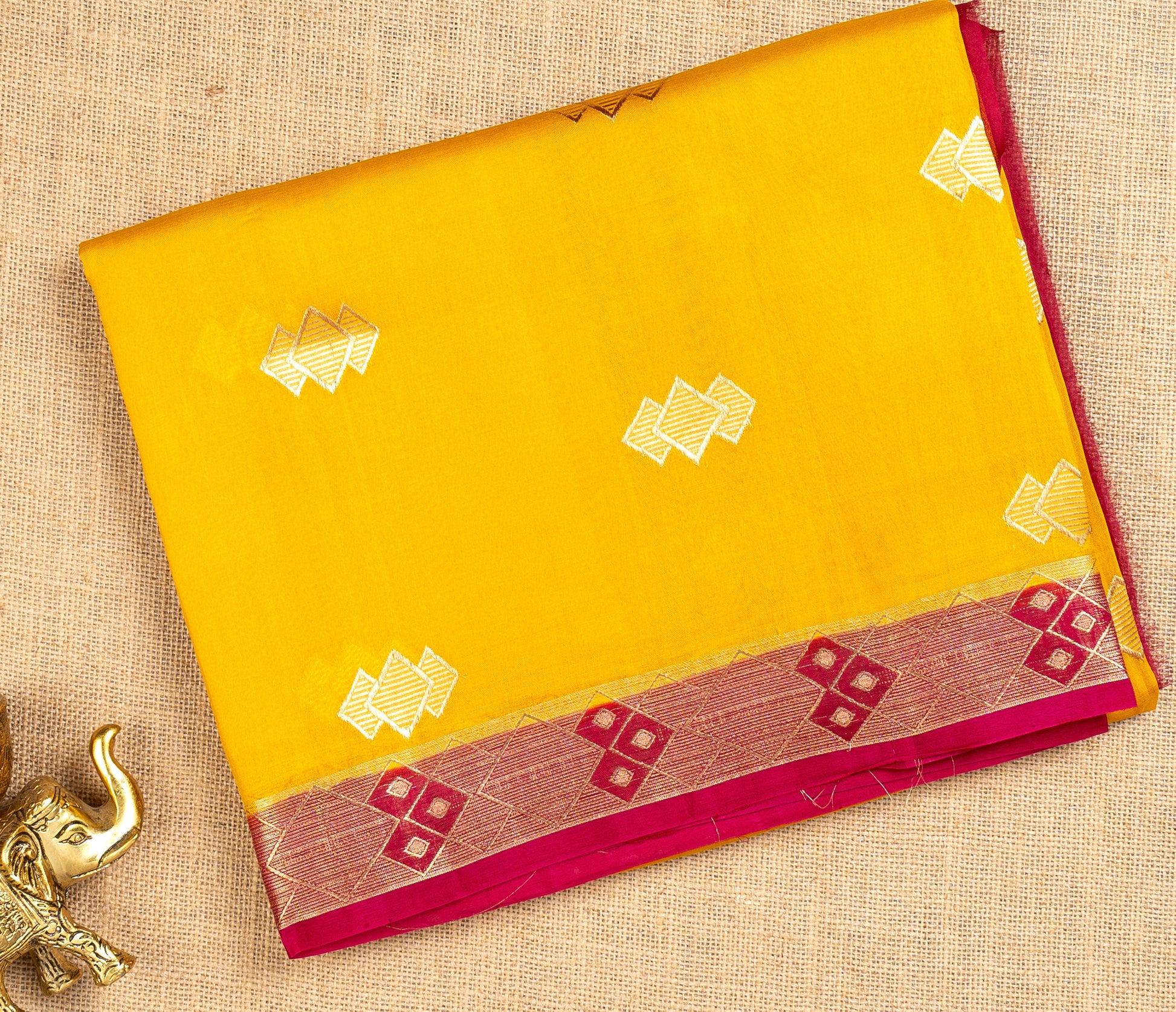 Yellow Banarasi Pure Organza Silk Saree with Contrast Magenta Border