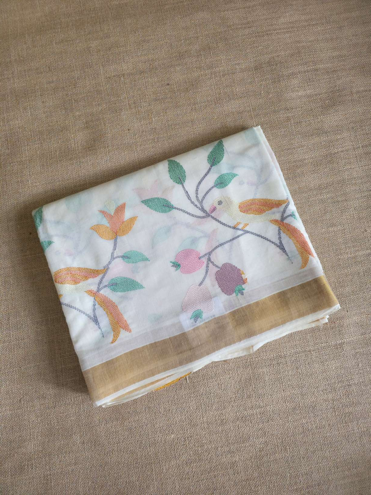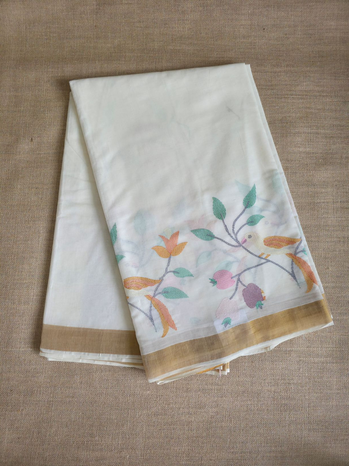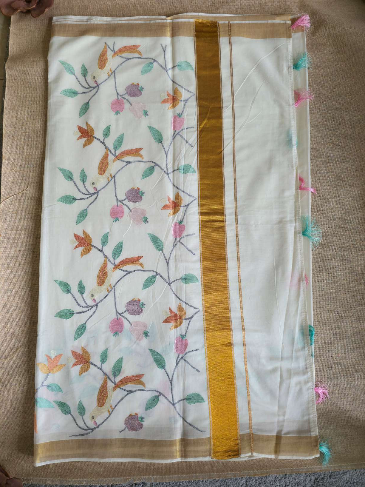 UP000044- Pure Cotton Embroidery Kerala Saree