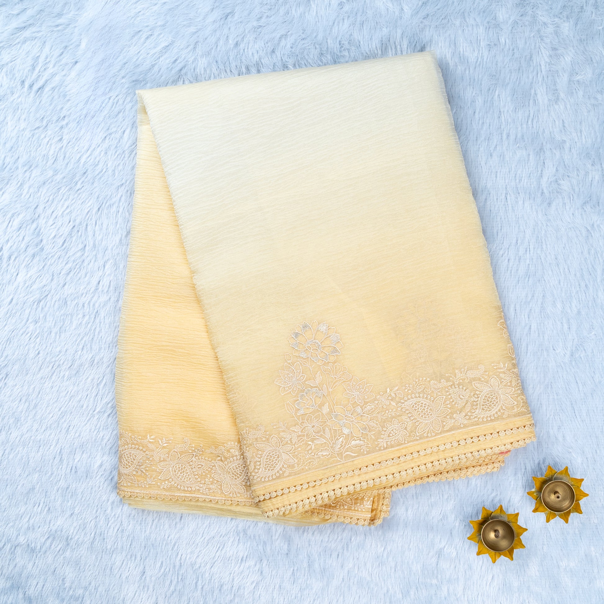 Fancy Crush Tissue Embroidery Cream colour